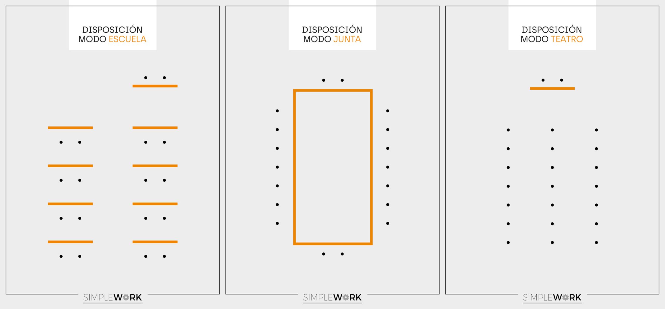 Configuramos la sala según tu tipo de formación y número de asistentes. También disponible para reuniones y juntas de empresa.